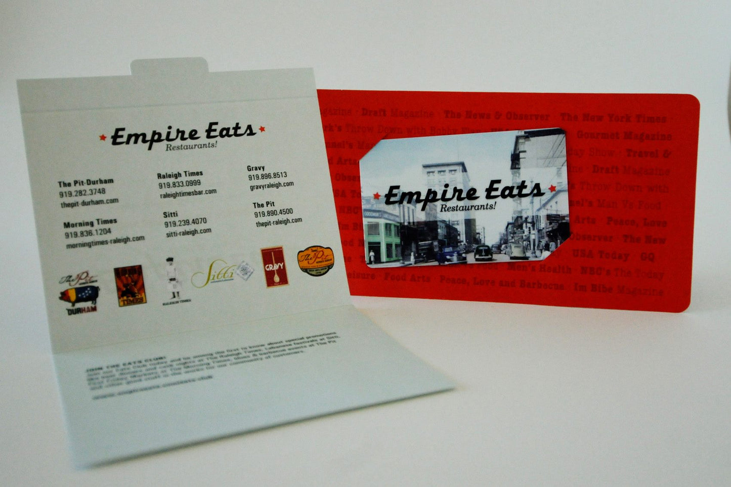 A gift card that lets you choose from any of our award-winning restaurants: The Pit, Sitti, Gravy, The Raleigh Times, The Morning Times, The Pizza Times and The Mecca. Our gift cards are physical cards, have no expiration date, and can ship to anywhere in the United States.